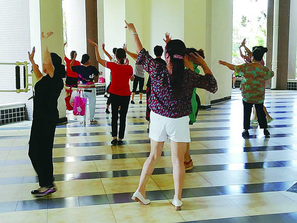 ▲丁山社区舞蹈队利用架空层开展活动 通讯员供图