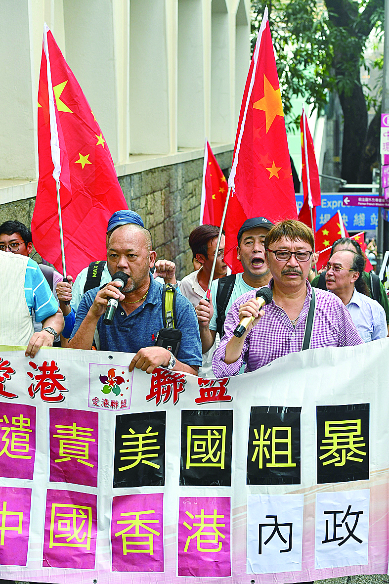 ▲8月26日,参加游行的市民向美国驻港总领事馆行进
