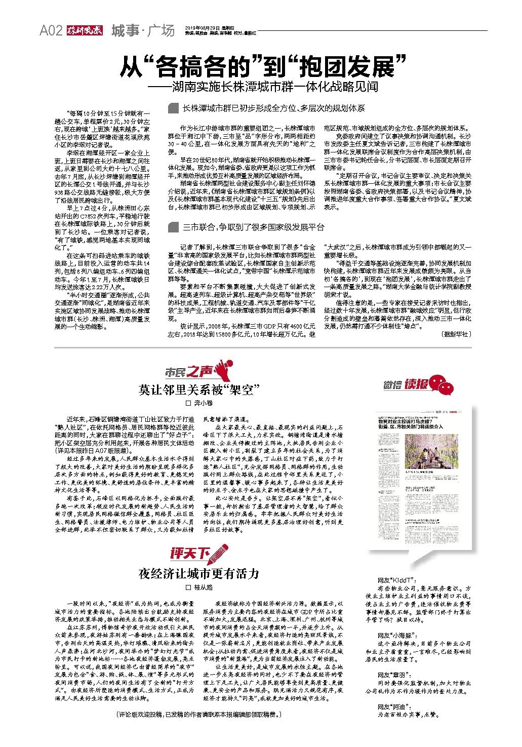 “得益于交通等基础设施逐渐完善,协同发展机制加快构建,长株潭城市群近年来发展成绩颇为亮眼。从当初‘各搞各的’,到现在‘抱团发展’,长株潭城市群走出了一条高质量发展之路。”湖南大学金融与统计学院副教授胡荣才说。