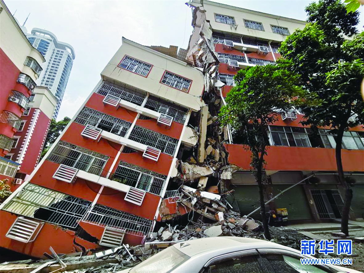 记者在现场看到,事发单身公寓楼共有6层,现已倾斜倒靠在隔壁一栋楼楼身,地面有部分破碎石块堆积,一楼是菜市场。目前,事发现场已被封锁。