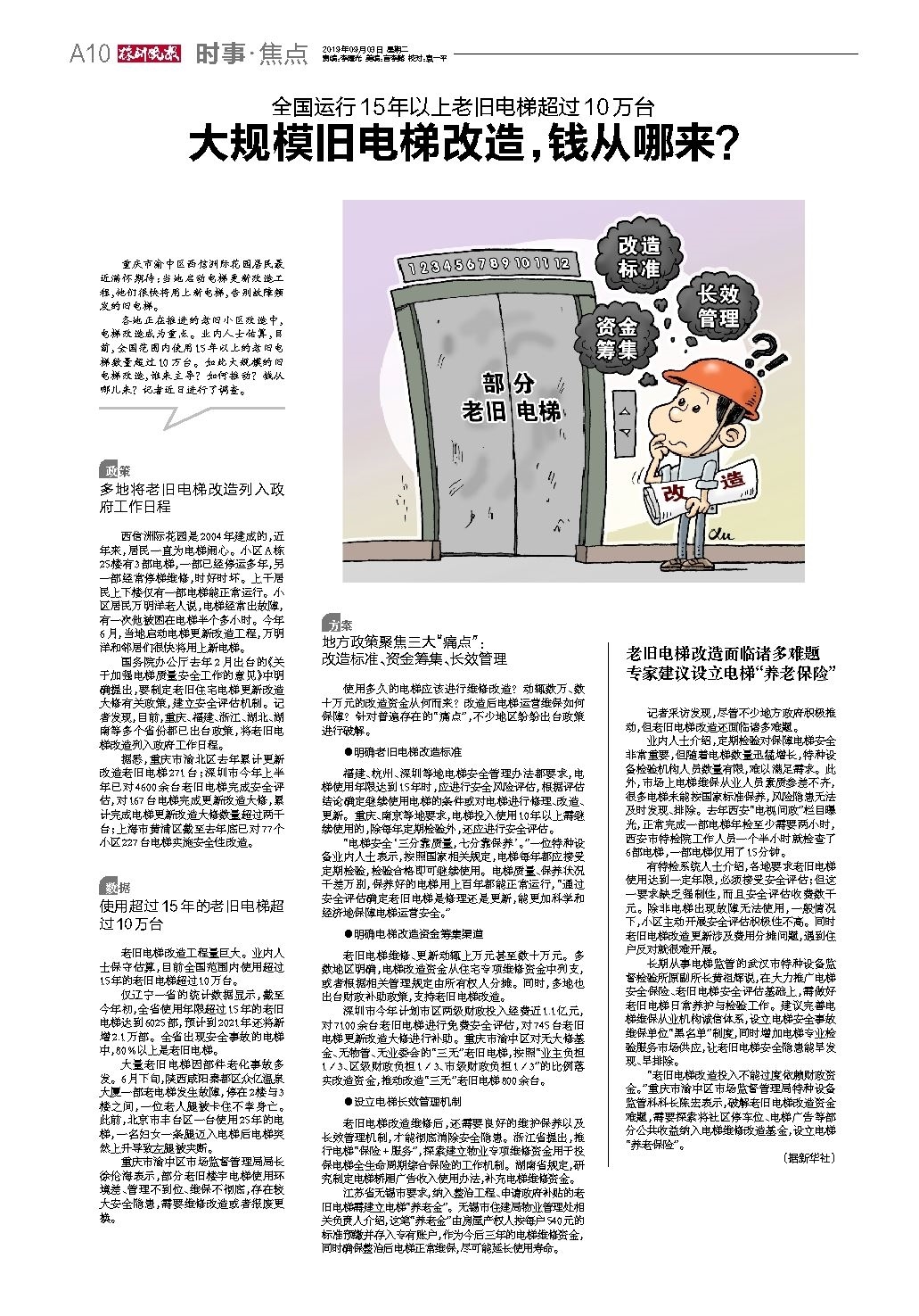 老旧电梯改造面临诸多难题 专家建议设立电梯“养老保险”
