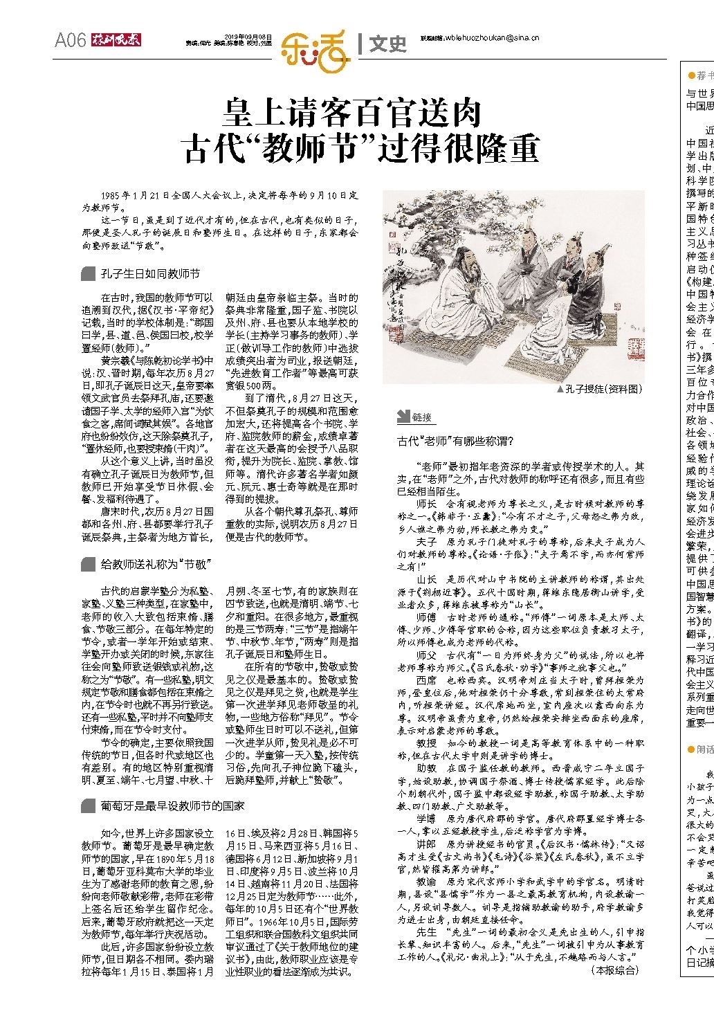 皇上请客百官送肉 古代“教师节”过得很隆重