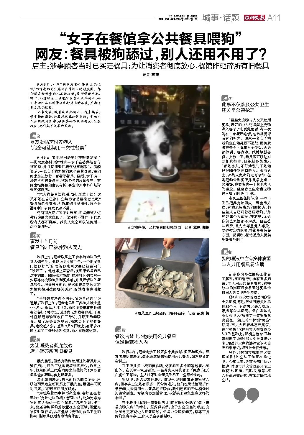 “女子在餐馆拿公共餐具喂狗” 网友:餐具被狗舔过,别人还用不用了?