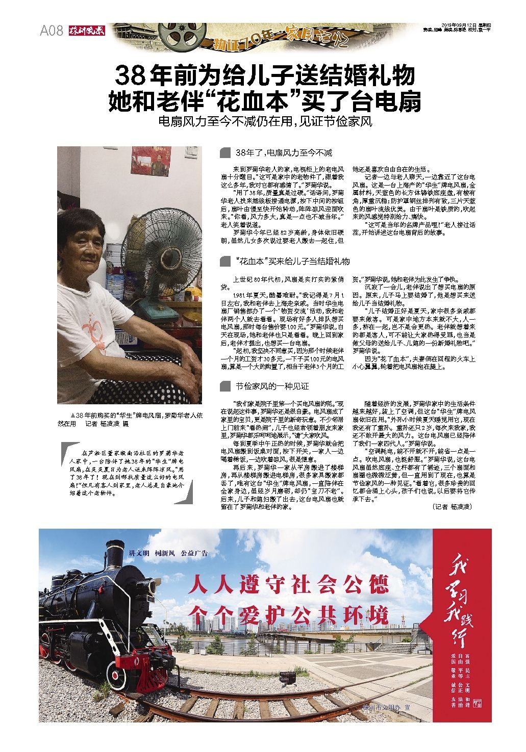 38年前为给儿子送结婚礼物 她和老伴“花血本”买了台电扇