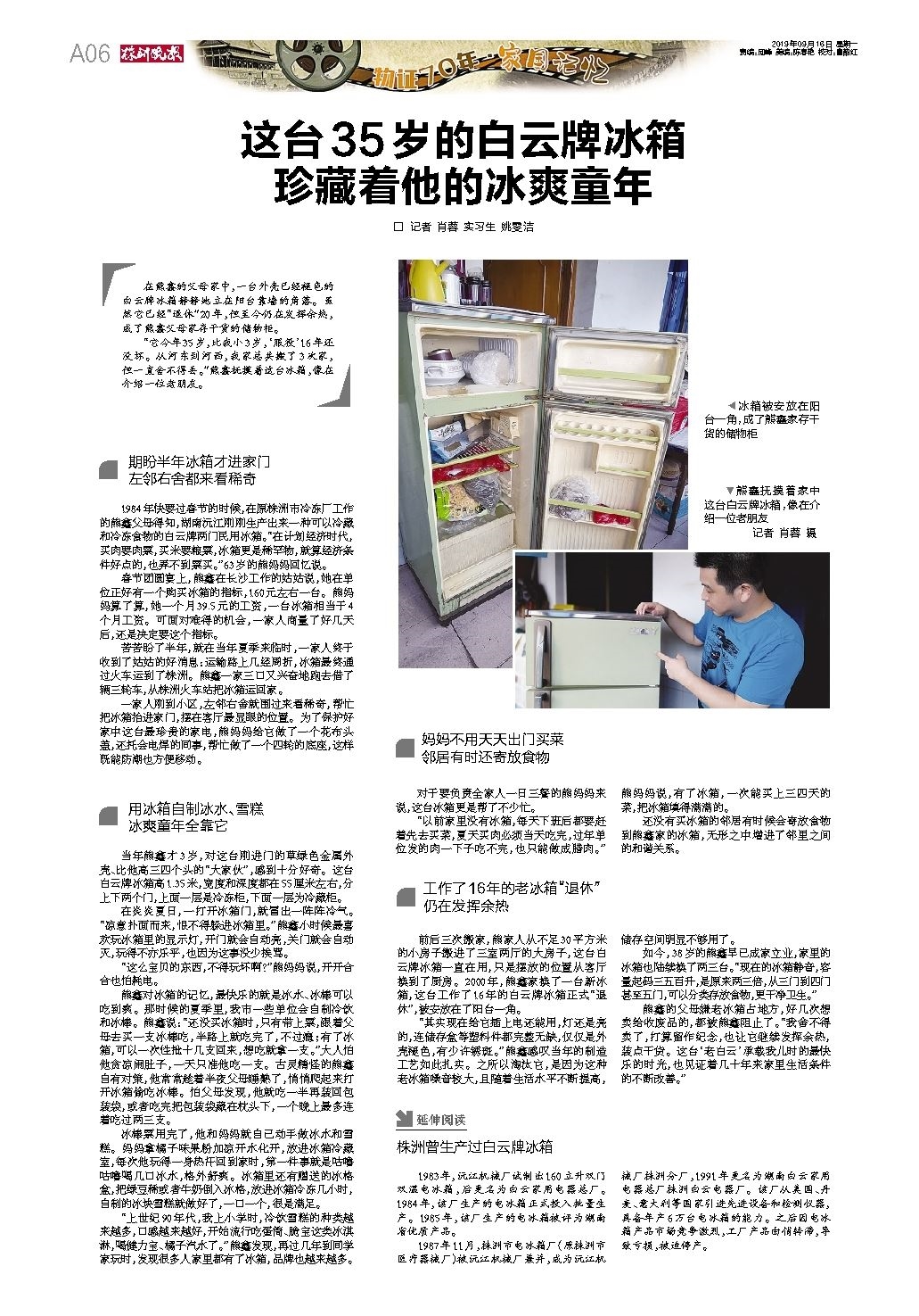 这台35岁的白云牌冰箱 珍藏着他的冰爽童年