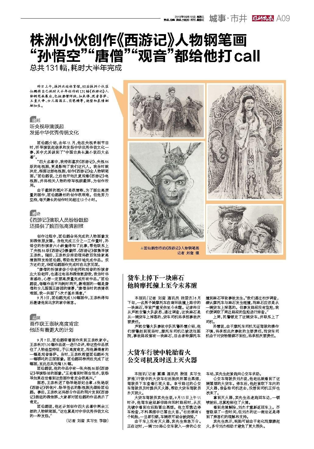 株洲小伙创作《西游记》人物钢笔画 “孙悟空”“唐僧”“观音”都给他打call