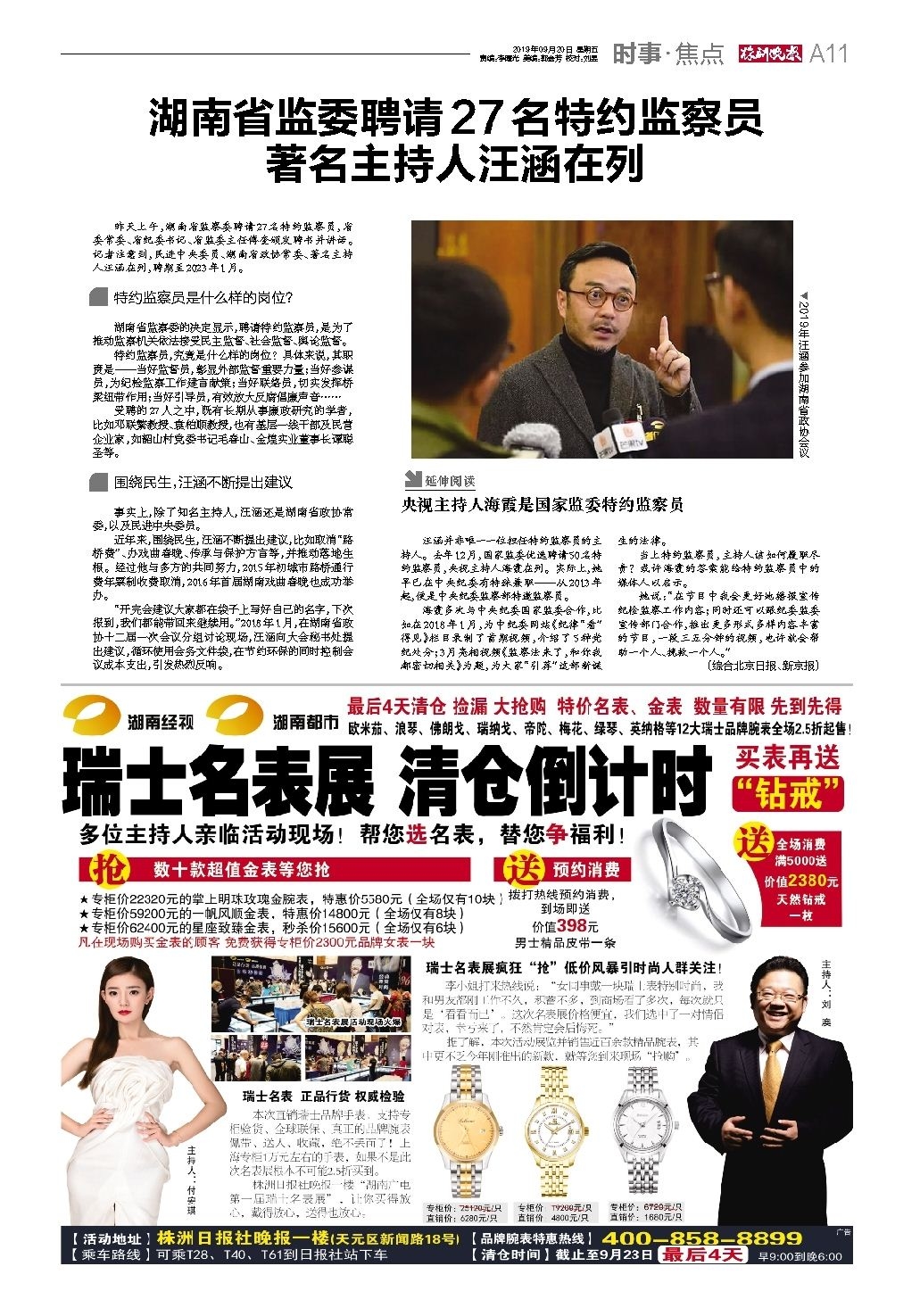 湖南省监委聘请27名特约监察员 著名主持人汪涵在列