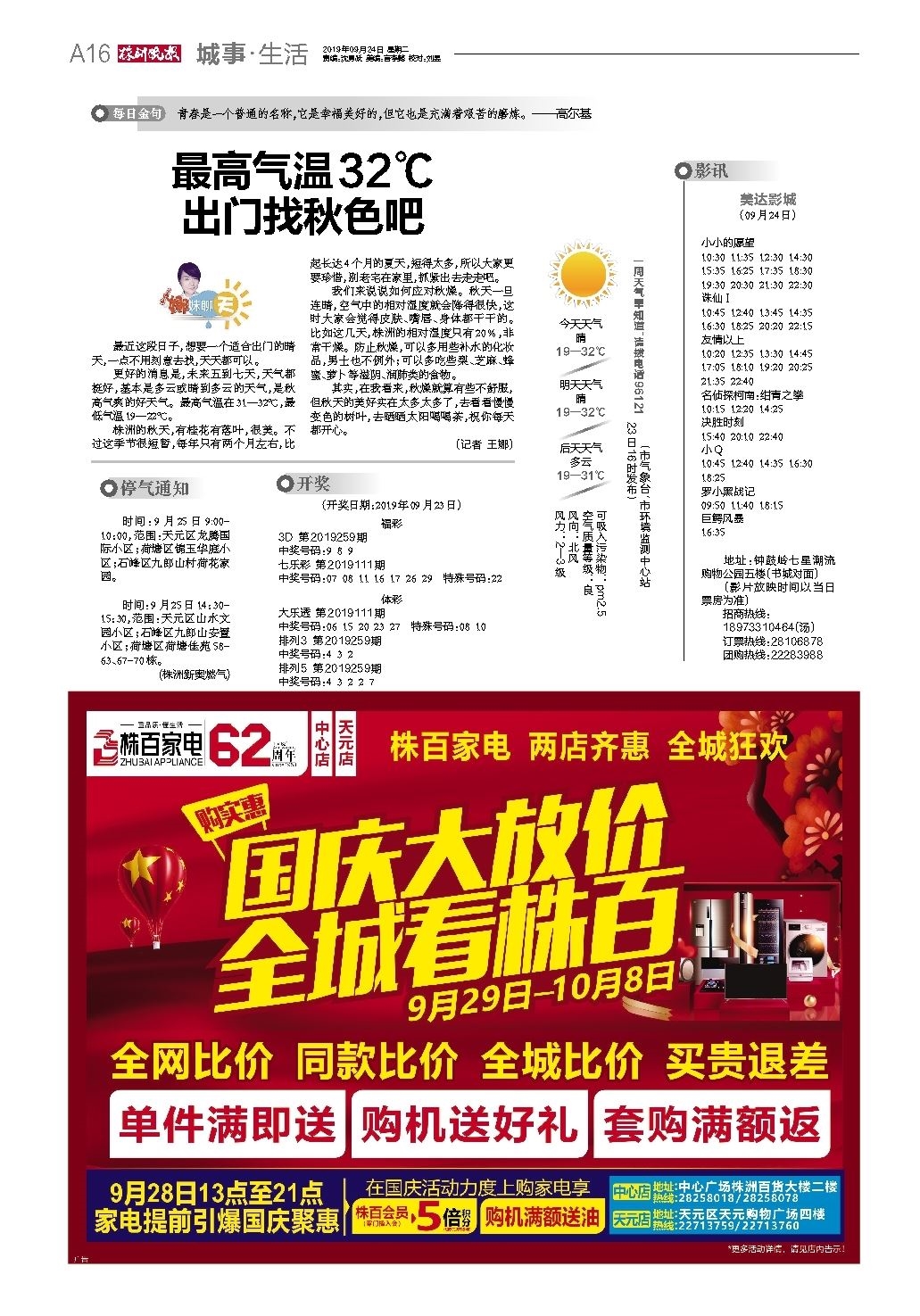 2019年09月24日《株洲晚报》