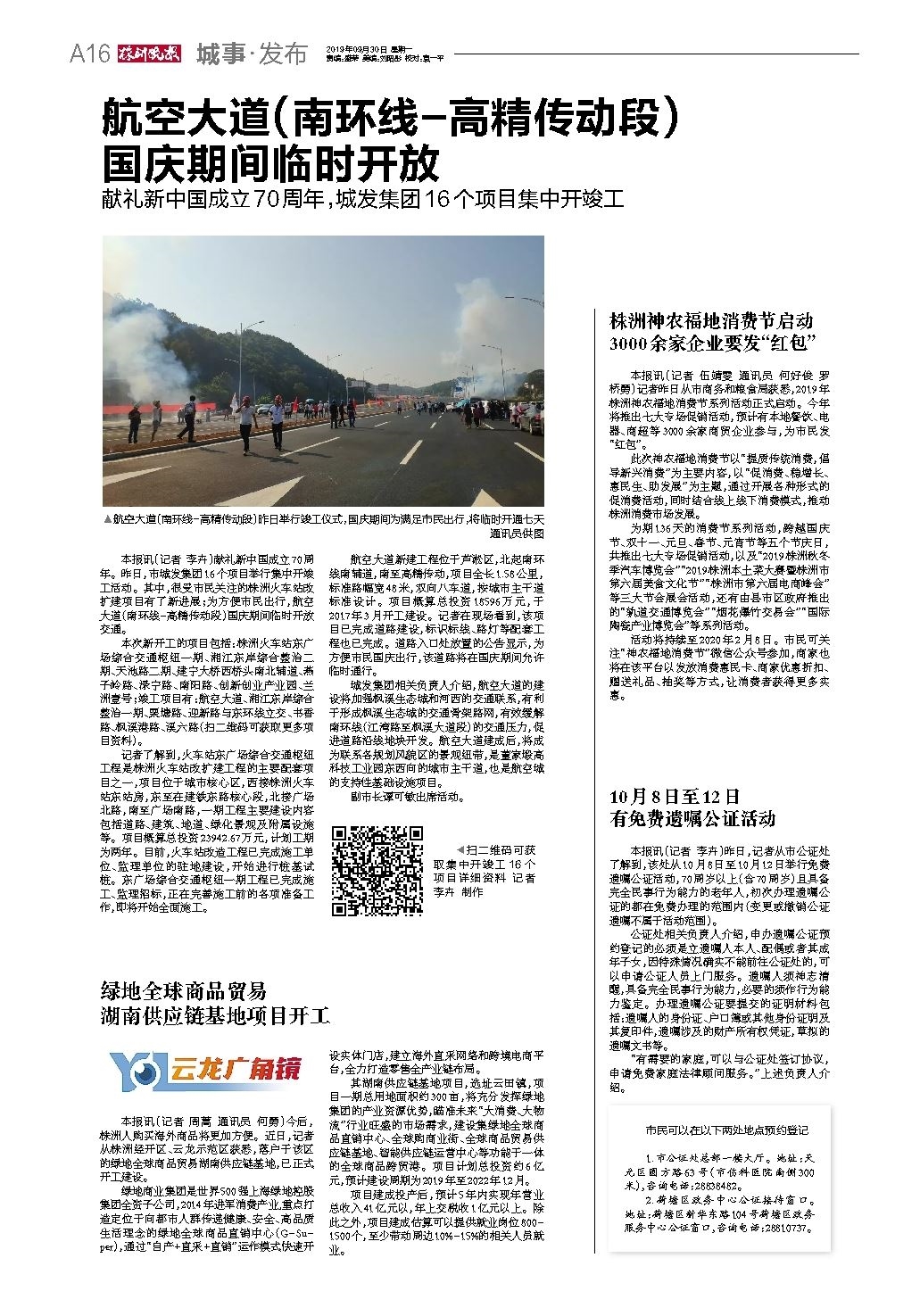 航空大道(南环线-高精传动段) 国庆期间临时开放