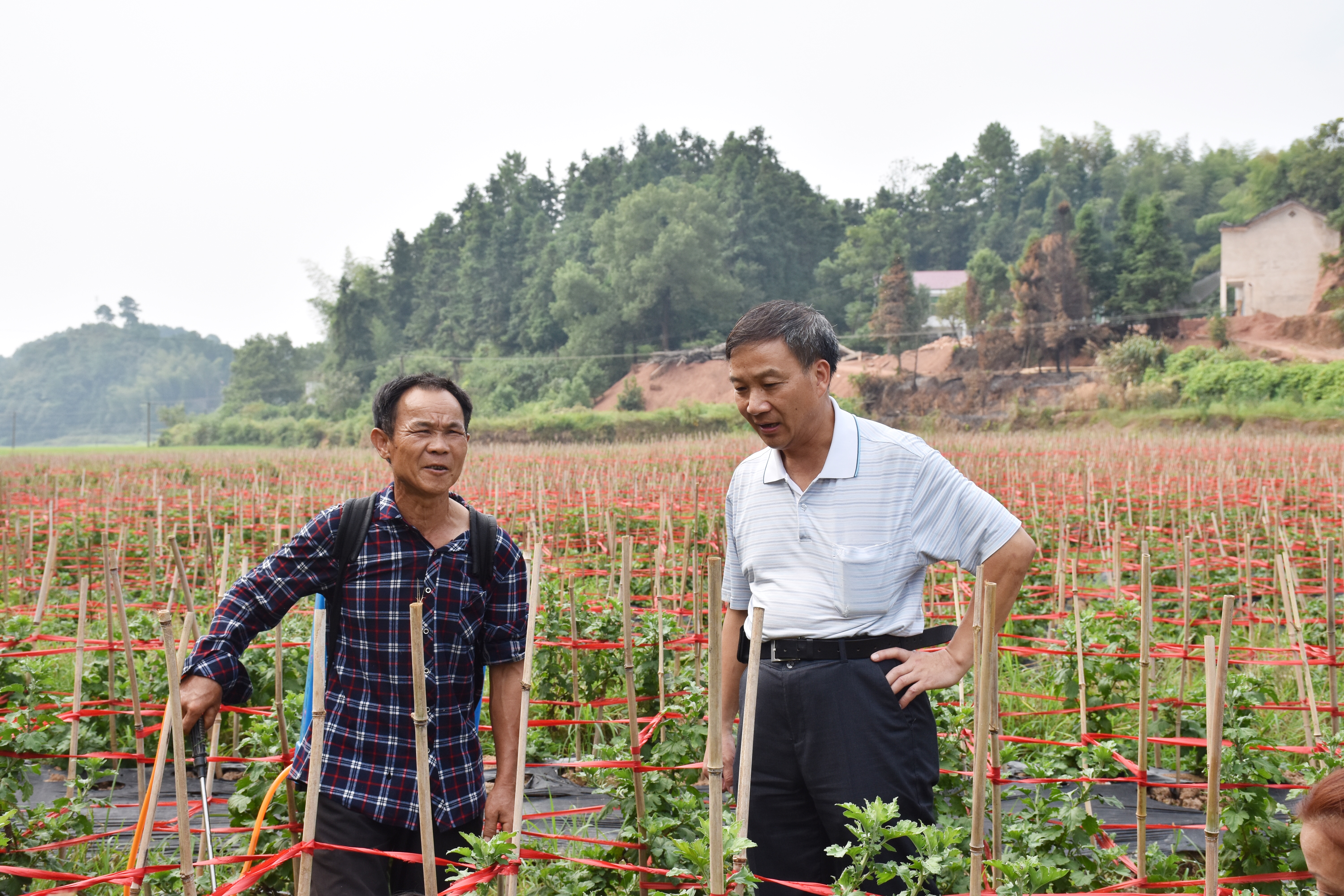 马不停蹄,今年4月10日,马小勇带着一名村干部就去醴陵的菊花种植基地考察;4月21日,白石村与醴陵菊花基地签订了技术合作协议;5月初,在村支部书记主持流转土地的同时,马小勇找到安徽、江西等全国闻名的菊花栽培高手进一步求教;5月24日,白石村几十万株菊花苗全部栽种完毕。