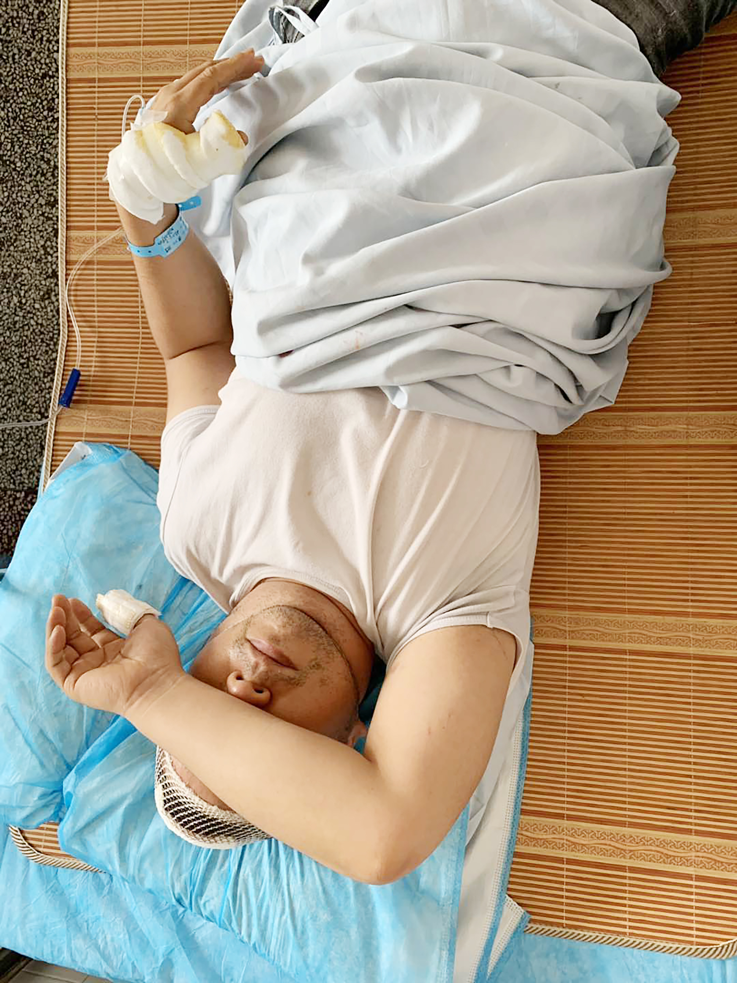 ▲管先生多处受伤,在渌口区中医院接受治疗 记者 贺天鸿 摄