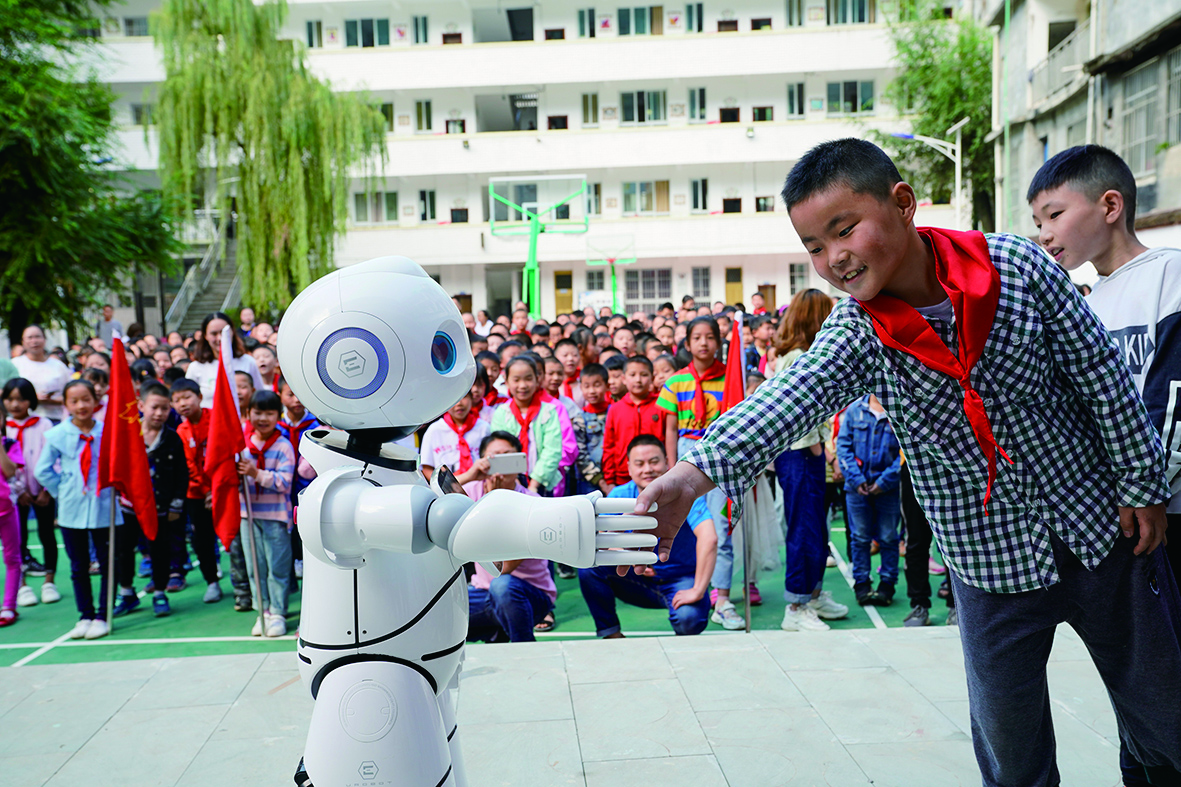 开学第一课 来了个机器人老师 9月2日开学第一天,地处重庆市城口县大山深处的蓼子乡第一中心小学迎来了一位机器人老师。据介绍,这款教育智能机器人由蓼子乡第一中心小学的对口帮扶学校——重庆市九龙坡区重庆铁路小学联合重庆智加美科技有限公司提供。机器人老师深入到蓼子乡第一中心小学及其附属村小开展为期一天科普教育课,旨在让偏远地区的孩子普及人工智能等相关知识,开拓眼界。 (据新华社)
