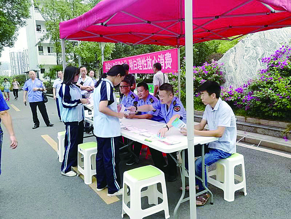 ▲工作人员向学生开展保健食品宣传工作 陈昭丽 摄