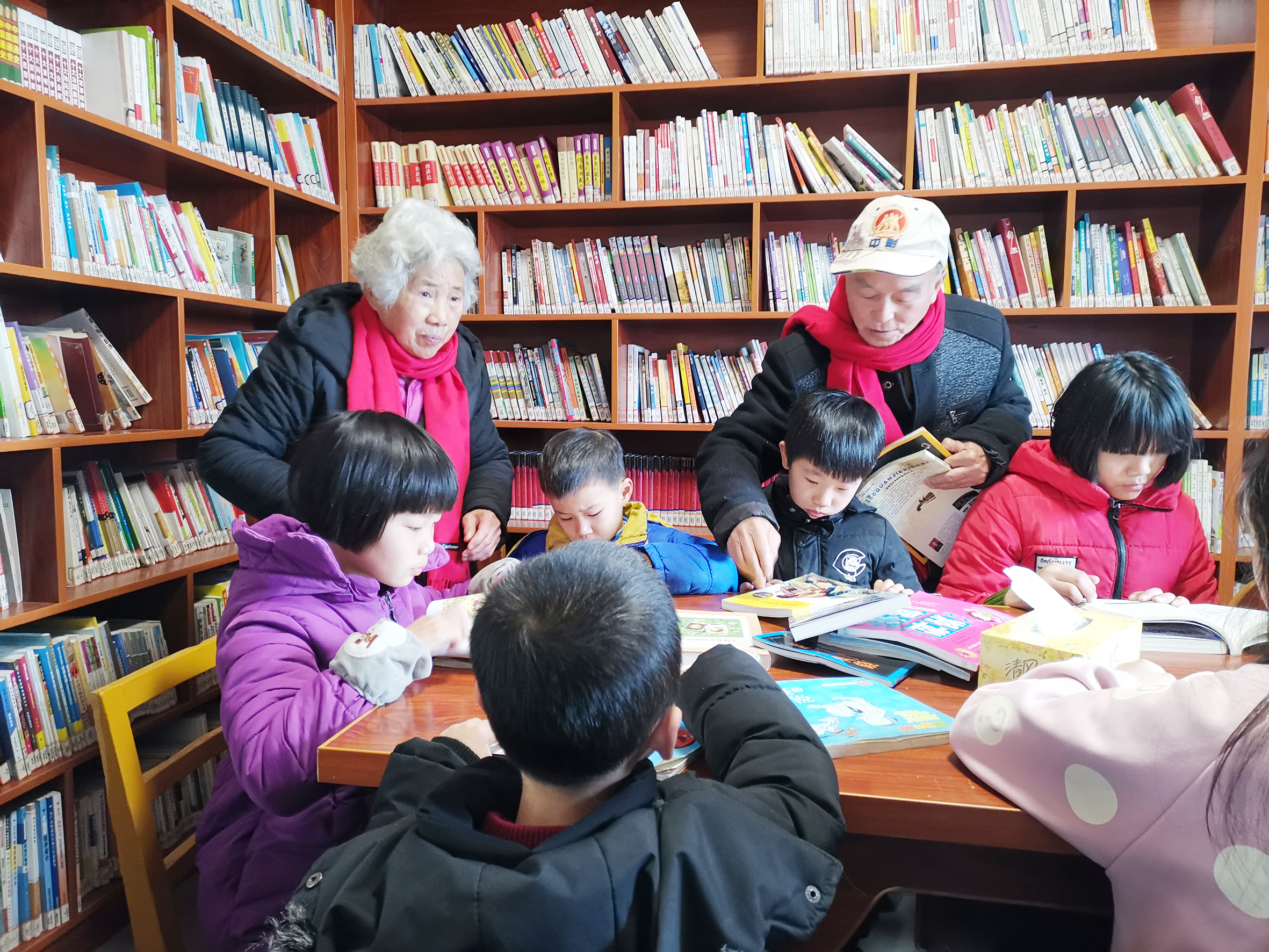 ◀夏昭炎和夫人杨莲金在免费辅导孩子 通讯员供图