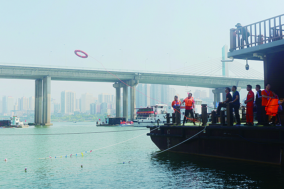 此次竞赛包括游泳救生、定点抛投、水上灭火、水上防污、航标复位等内容。其中,定点抛投项目要求选手在船边向指定区域抛投救生圈,既要投得远,还要投得准。水上防污则与湘江保护治理息息相关,一旦船舶出现油料或货物泄漏,就要立即启动防污措施。