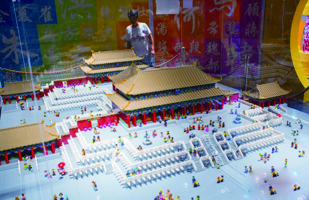9月4日,观众在参观由50万块乐高积木搭建的“故宫三大殿”模型。日前,“方块王潮——乐高中国文化艺术大展”在北京举行,由乐高积木搭建的故宫、上海外滩、平遥古城等中国标志性建筑以及京剧脸谱等中国传统文化符号呈现在观众眼前。展览将持续至9月10日。