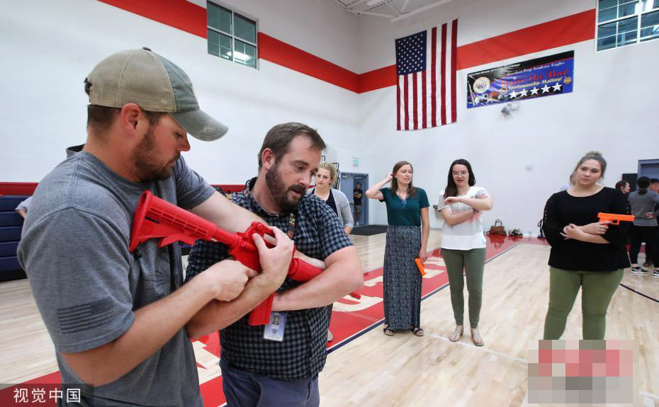 9月4日,美国犹他州一所学校的教师在学习如何解除枪手的武器并进行反击。