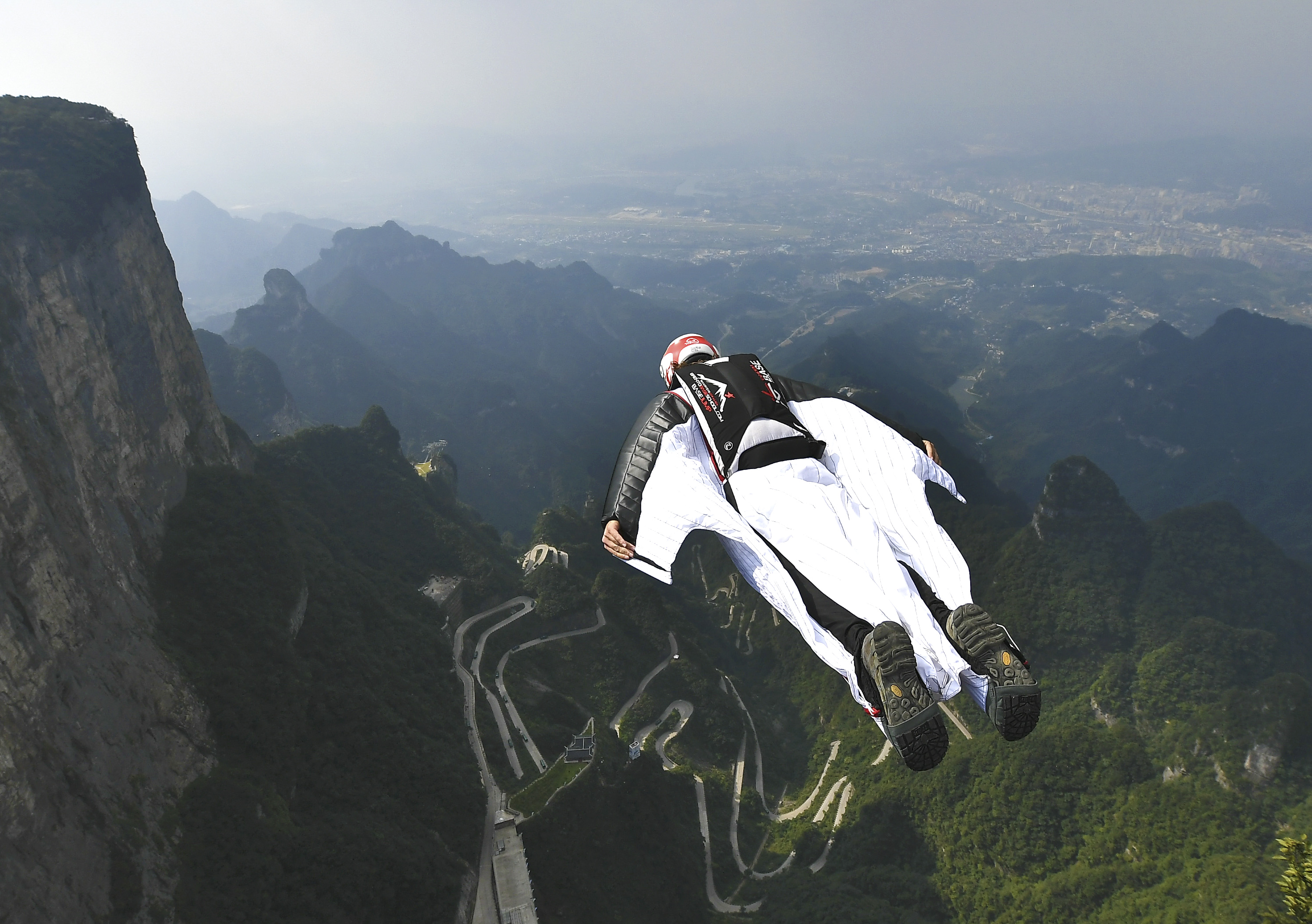 9月4日,2019年第八届翼装飞行世界锦标赛选手在张家界天门山试飞。锦标赛于9月5日至9月8日在张家界天门山举行,有来自11个国家和地区的16名翼装飞行运动员进行激烈角逐。
