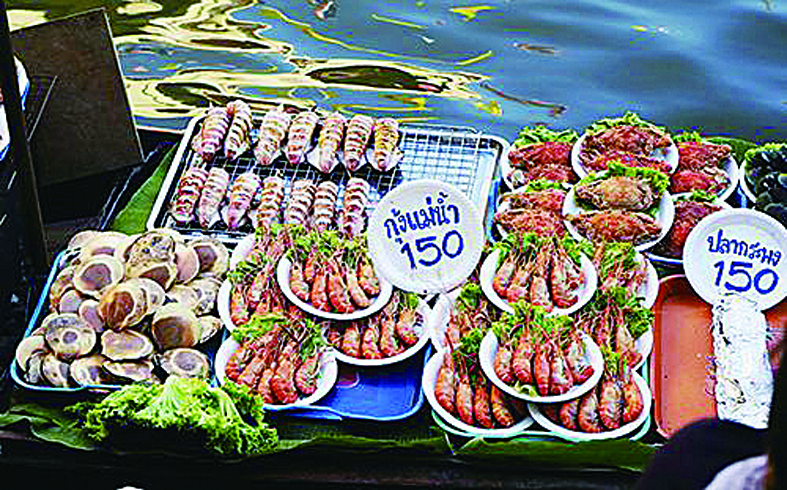沙美岛不仅有美丽的热带风光和第一流的海泳场,还有那别具特色且价廉物美的热带水果和海鲜品尝。泰国菜以其味道鲜美和原料新鲜而闻名于世,沙美岛更以口味奇特的海鲜产品而独具当地特色。有道是,到了沙美岛没吃海鲜就等于没到沙美岛。