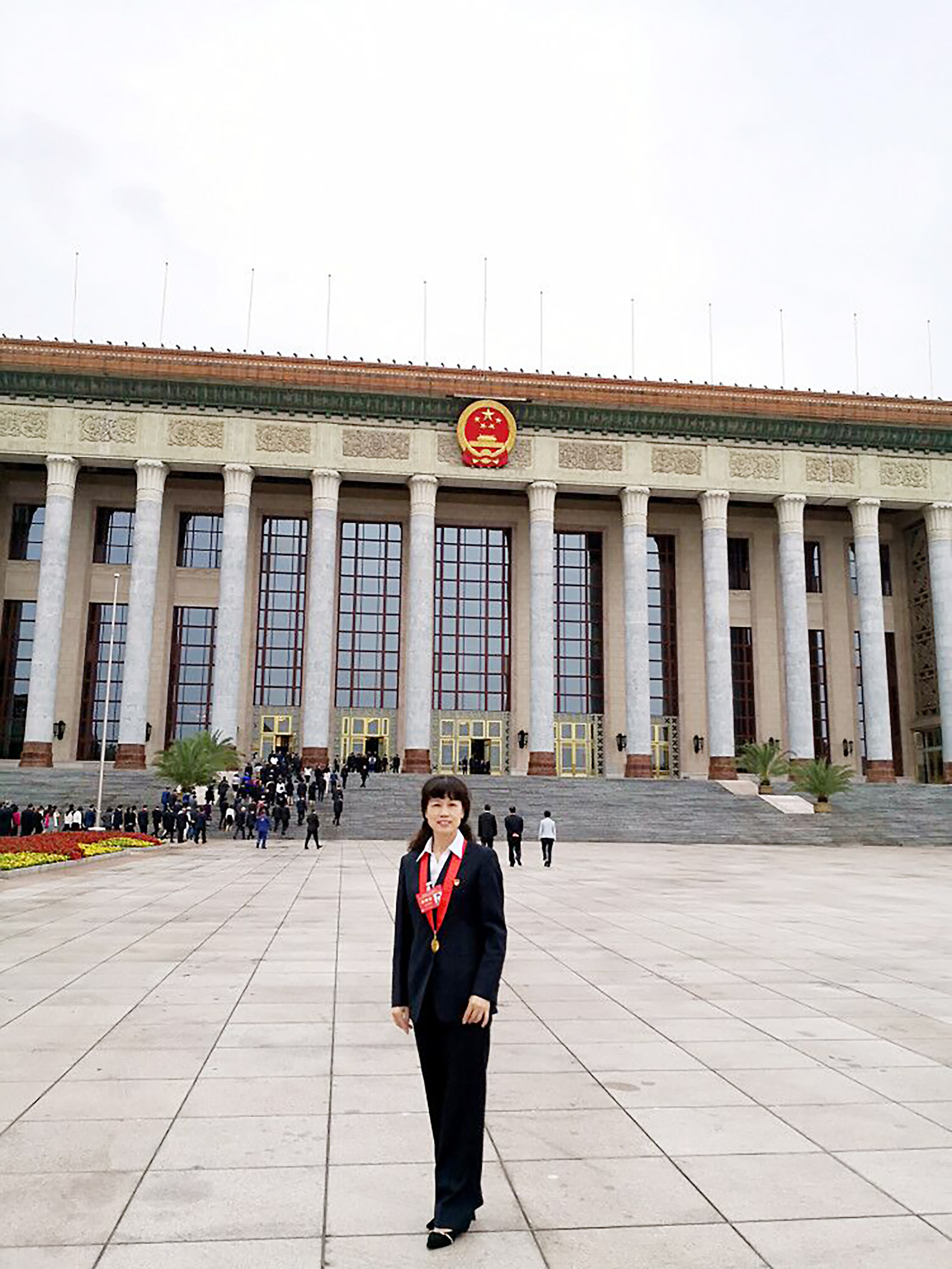 ▲王琼辉在人民大会堂外拍照留念 受访者供图