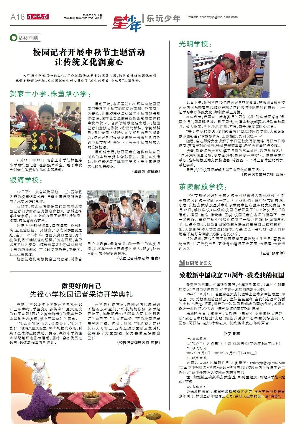 必须以Word文档附件形式发送至: zzrbsxyjz@vip********* (文章中注明姓名+学校+班级+指导老师);校园记者可投稿至班主任处,由班主任转发给校园记者辅导老师