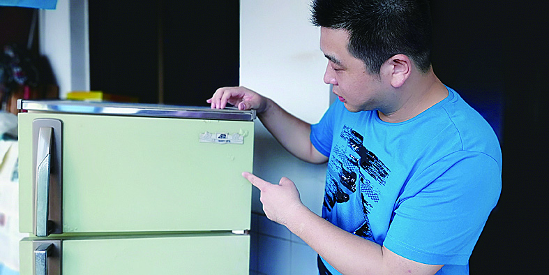 ▼熊鑫抚摸着家中这台白云牌冰箱,像在介绍一位老朋友