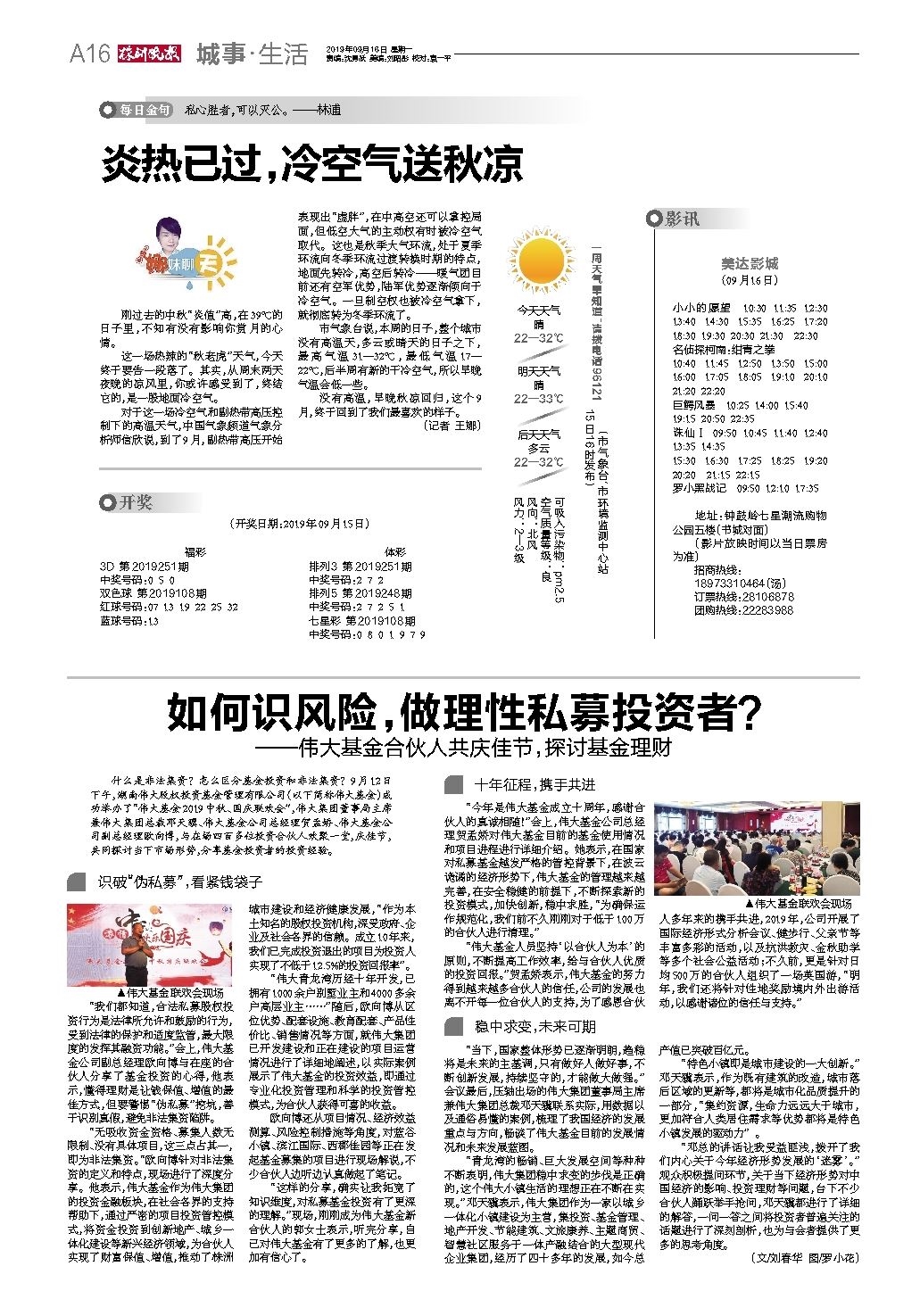 什么是非法集资?怎么区分基金投资和非法集资?9月12日下午,湖南伟大股权投资基金管理有限公司(以下简称伟大基金)成功举办了“伟大基金2019中秋、国庆联欢会”,伟大集团董事局主席兼伟大集团总裁邓天骥、伟大基金公司总经理贺孟娇、伟大基金公司副总经理欧向博,与在场四百多位投资合伙人欢聚一堂,庆佳节,共同探讨当下市场形势,分享基金投资者的投资经验。