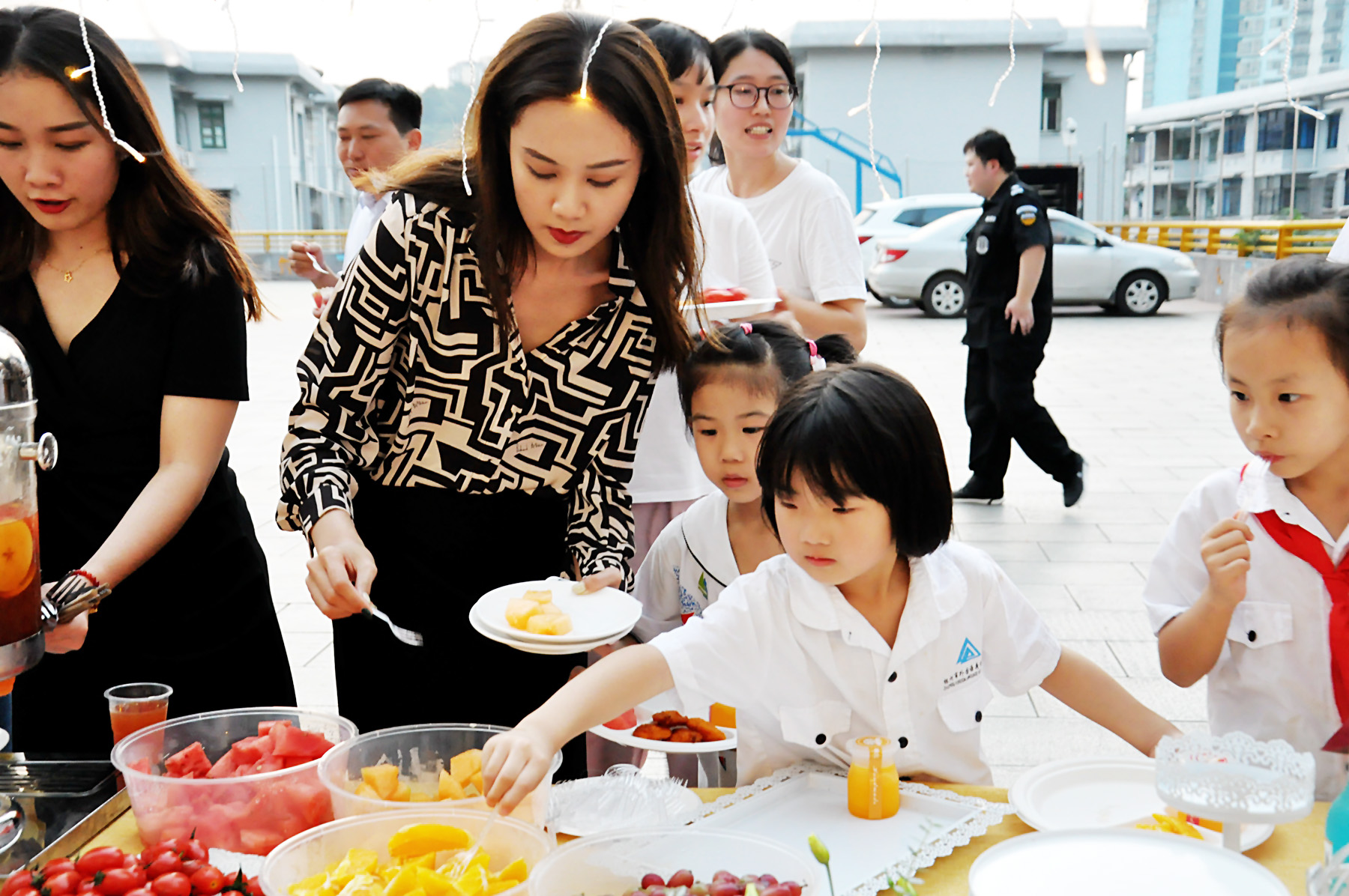 当天晚上,一场别有特色的教师节晚宴在学校拉开序幕。灯笼、星星装饰灯散发出温暖柔和的光点亮了现场。“学校请了专业团队准备自助餐,怕有些老师吃不惯西餐,食堂还特地烹饪了一些中餐菜式供老师选择。”此次策划的负责人熊老师介绍。