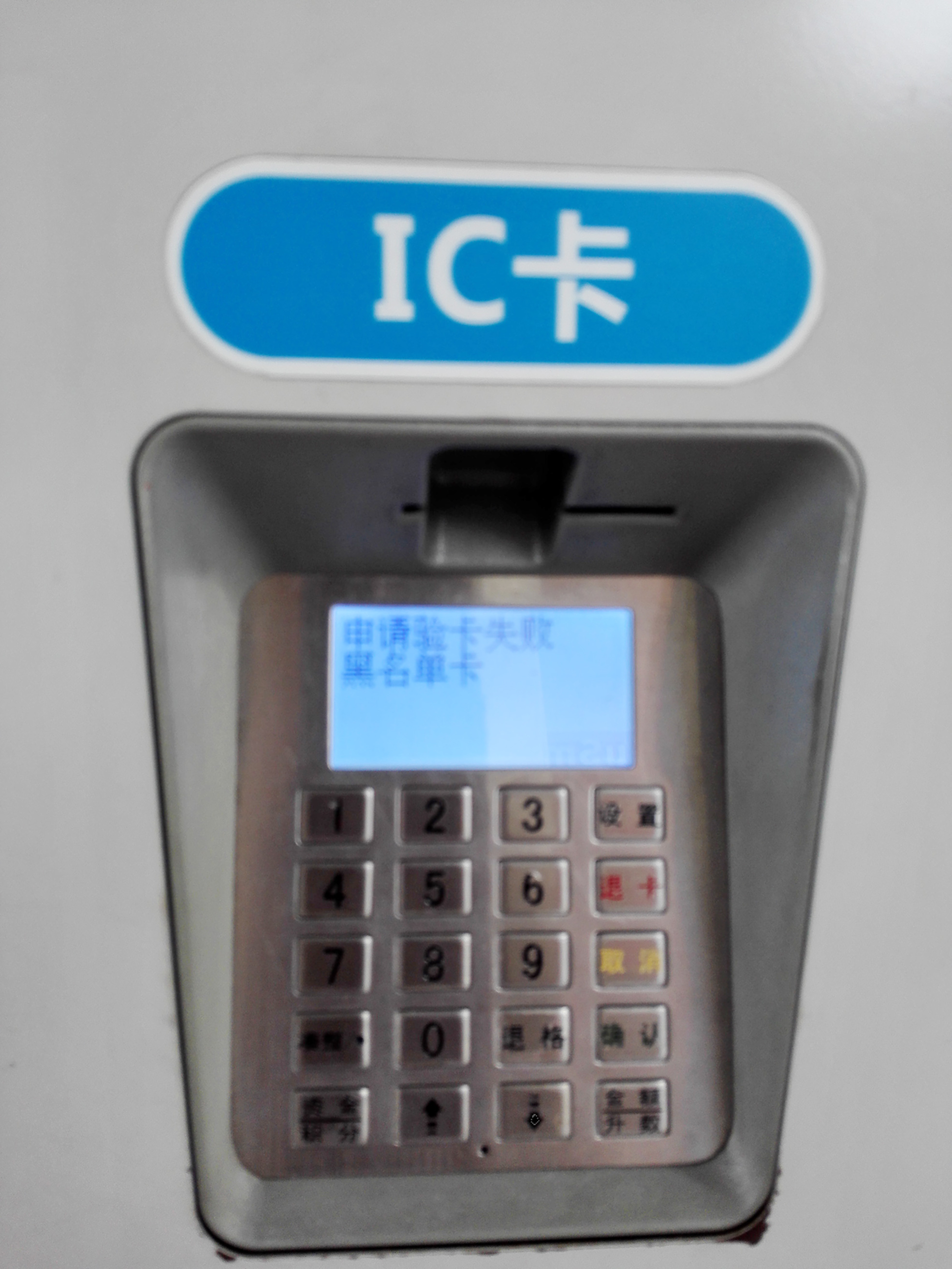 ▲插进加油卡,机子显示“黑名单卡” 何先生供图