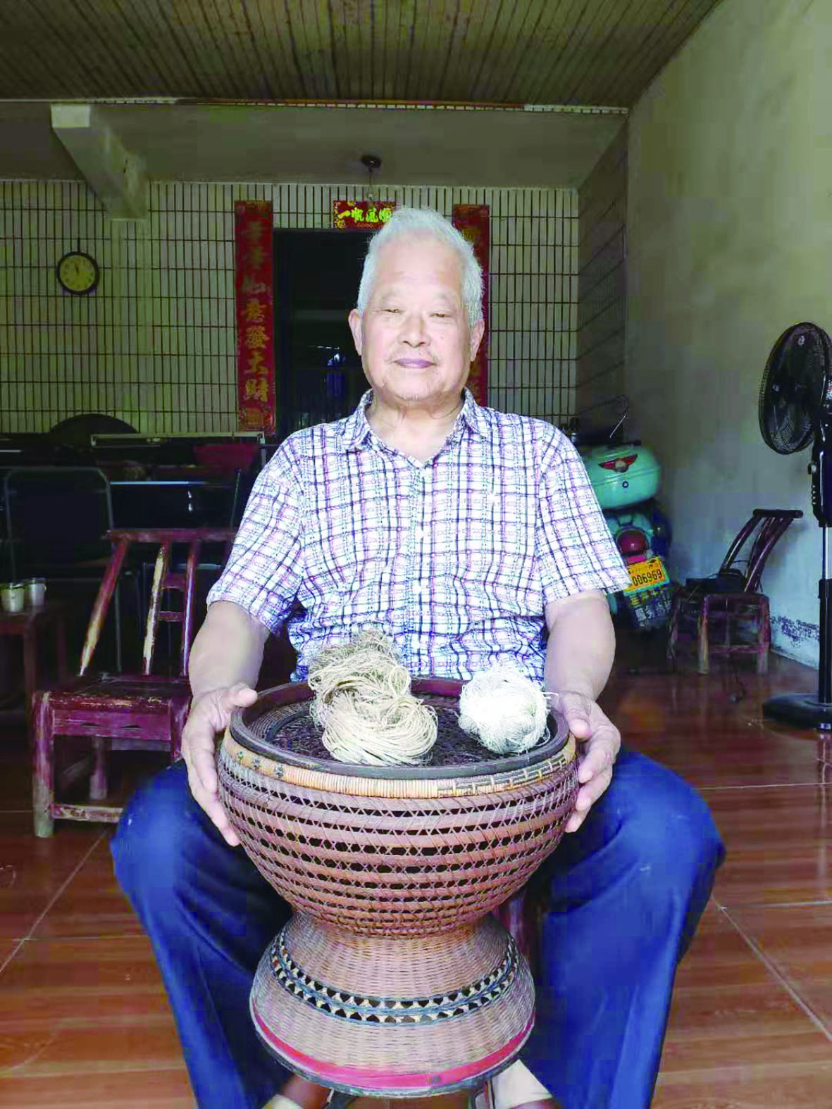 ▲端着麻篮,陈立珊满是感慨 记者 陈驰 摄