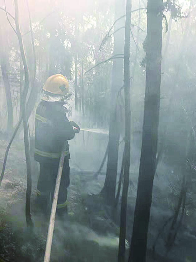 ▲群丰镇新文社区突发山火,消防员正在扑救 通讯员供图