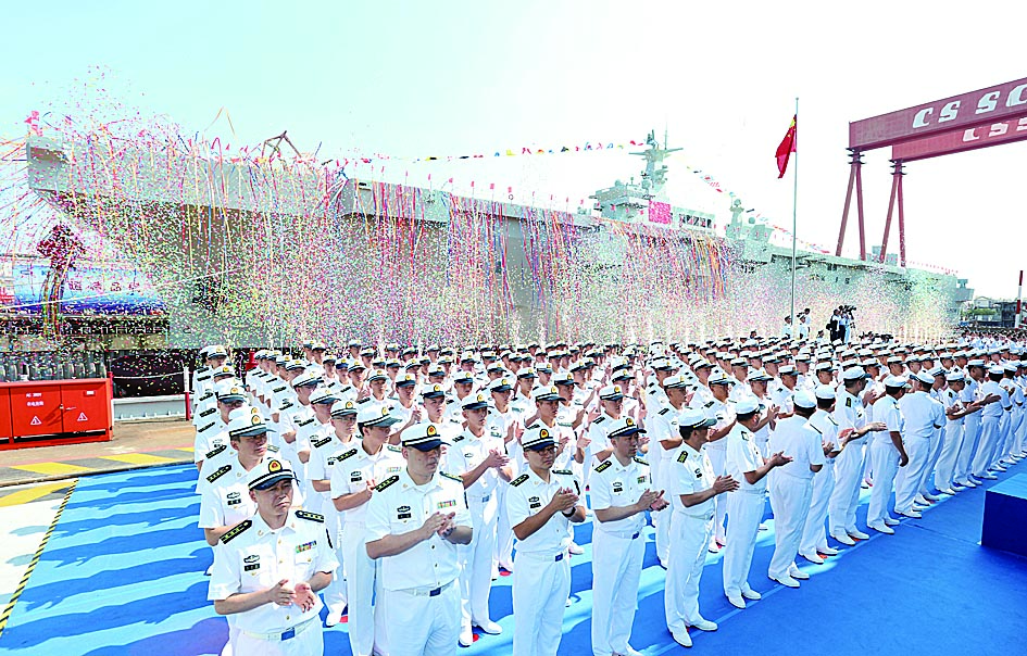 中国海军首艘两栖攻击舰下水仪式25日上午在上海举行。