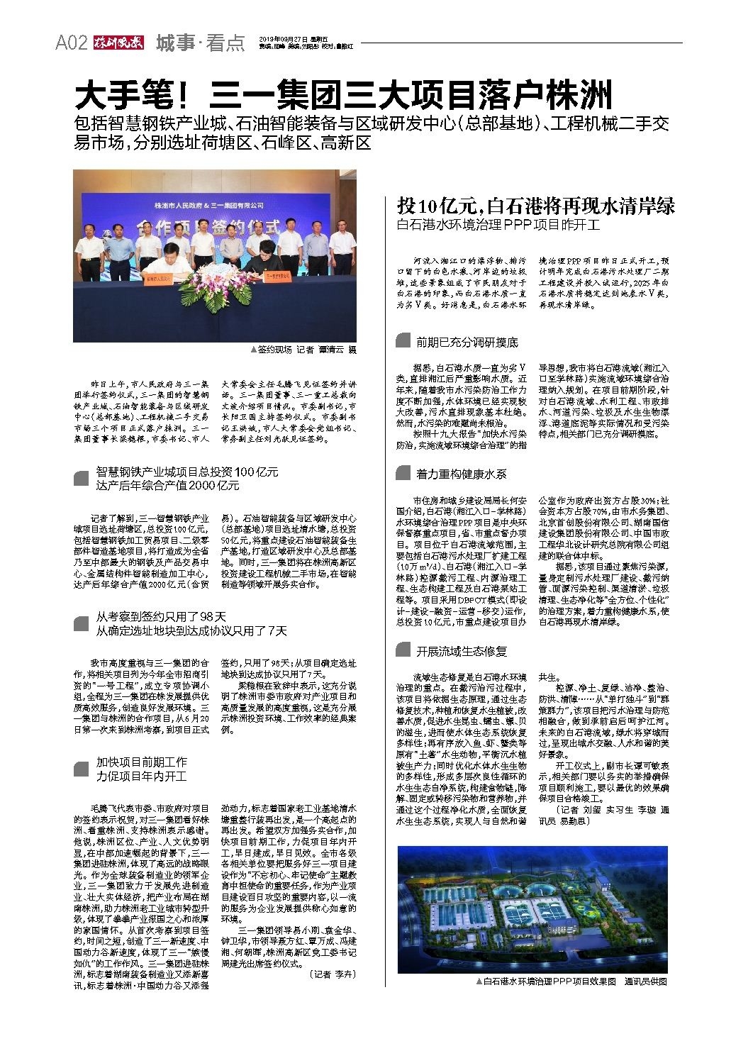 控源、净土、复绿、洁净、整治、防洪、清障……从“单打独斗”到“群策群力”,该项目把污水治理与防范相融合,做到承前启后呵护江河。未来的白石港流域,绿水将穿城而过,呈现出城水交融、人水和谐的美好景象。