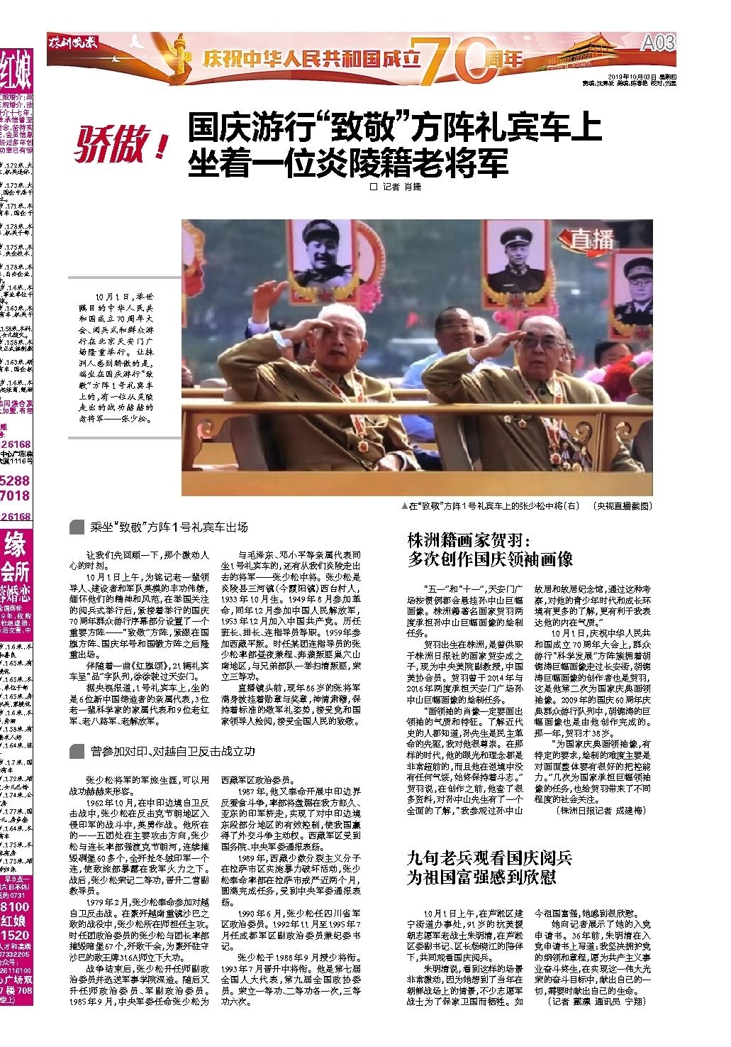 国庆游行“致敬”方阵礼宾车上坐着一位炎陵籍老将军 □ 记者 肖捷