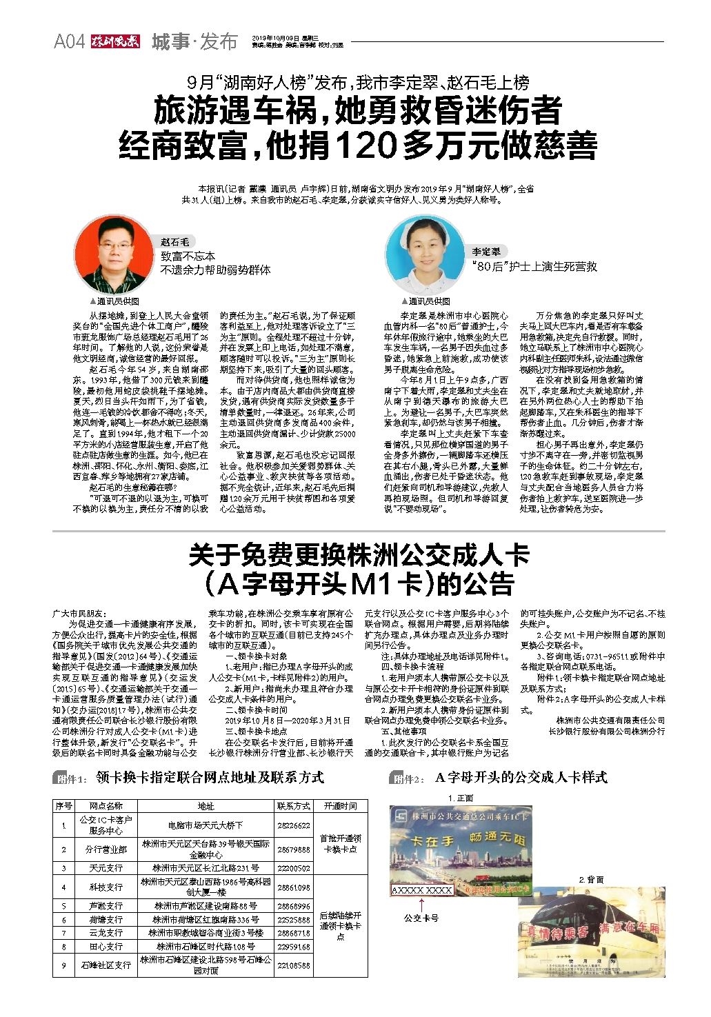 关于免费更换株洲公交成人卡 (A字母开头M1卡)的公告