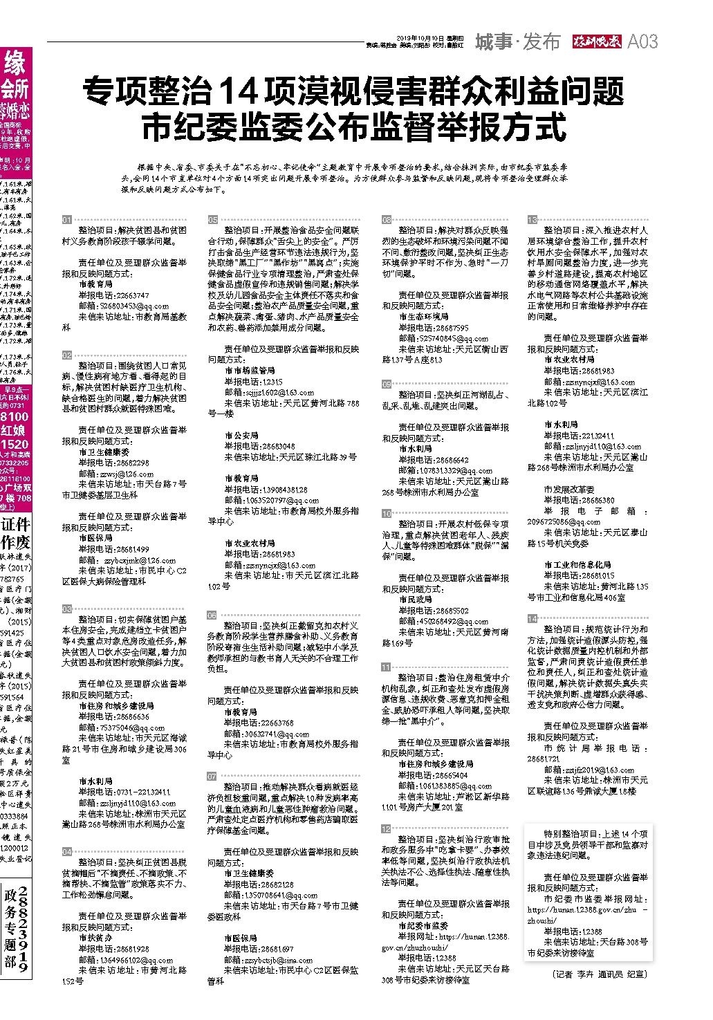 专项整治14项漠视侵害群众利益问题市纪委监委公布监督举报方式