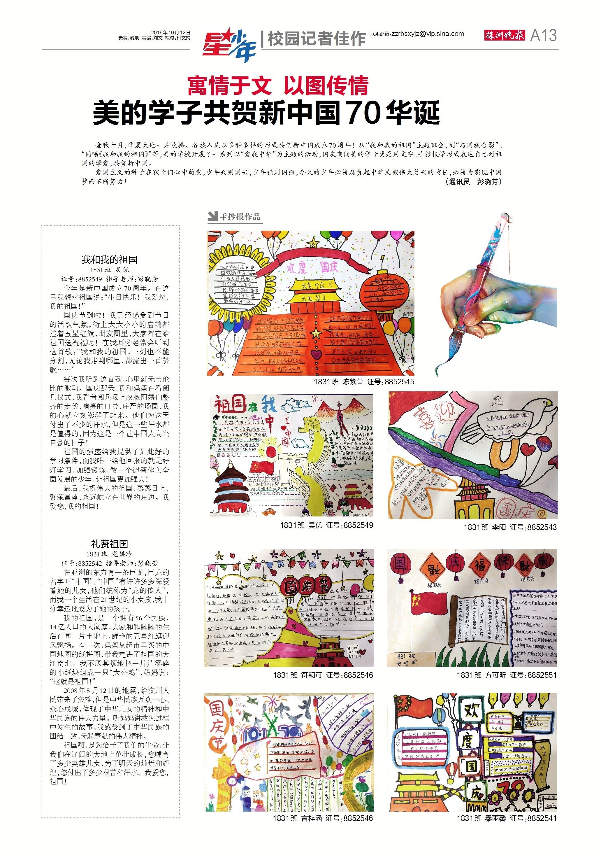 美的学子共贺新中国70华诞