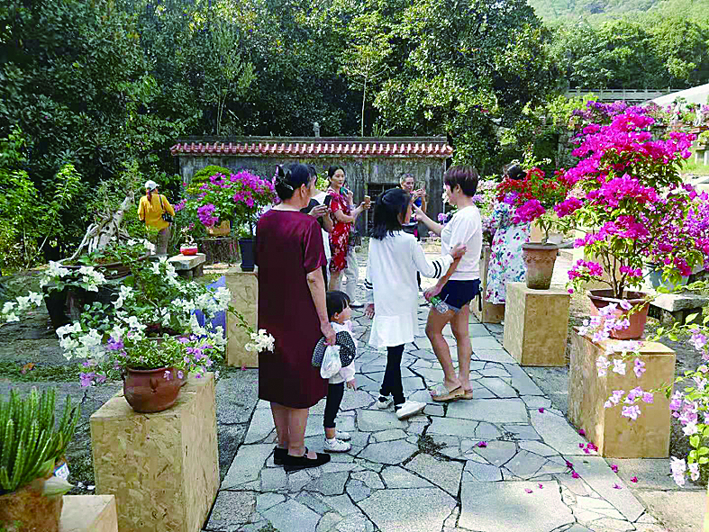 在现场,粉的、黄的、白的、紫红的多色三角梅和清新脱俗的蓝雪花竞相开放;杜鹃、香樟、紫檀等盆景盆栽争奇斗艳;葡萄、西瓜等瓜果飘香……300多个品种、上万盆花卉,吸引了众多市民来参观。