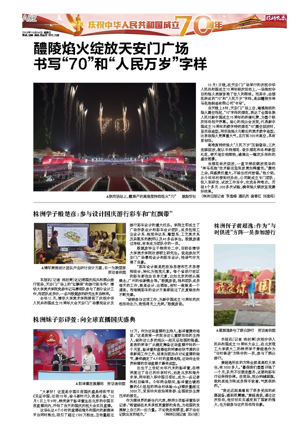 10月1日晚,在天安门广场举行的庆祝中华人民共和国成立70周年联欢活动上,一场绚烂夺目的焰火表演惊艳了世人的眼球。而其中,由烟花拼成的“70”和“人民万岁”字样,是由醴陵市神马花炮制造有限公司“书写”。