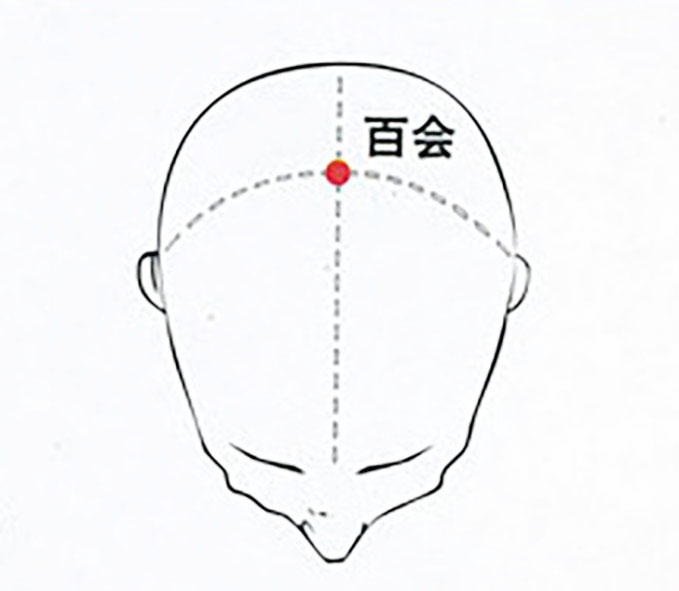 取穴:在头顶正中线与两耳尖联线的交点处。