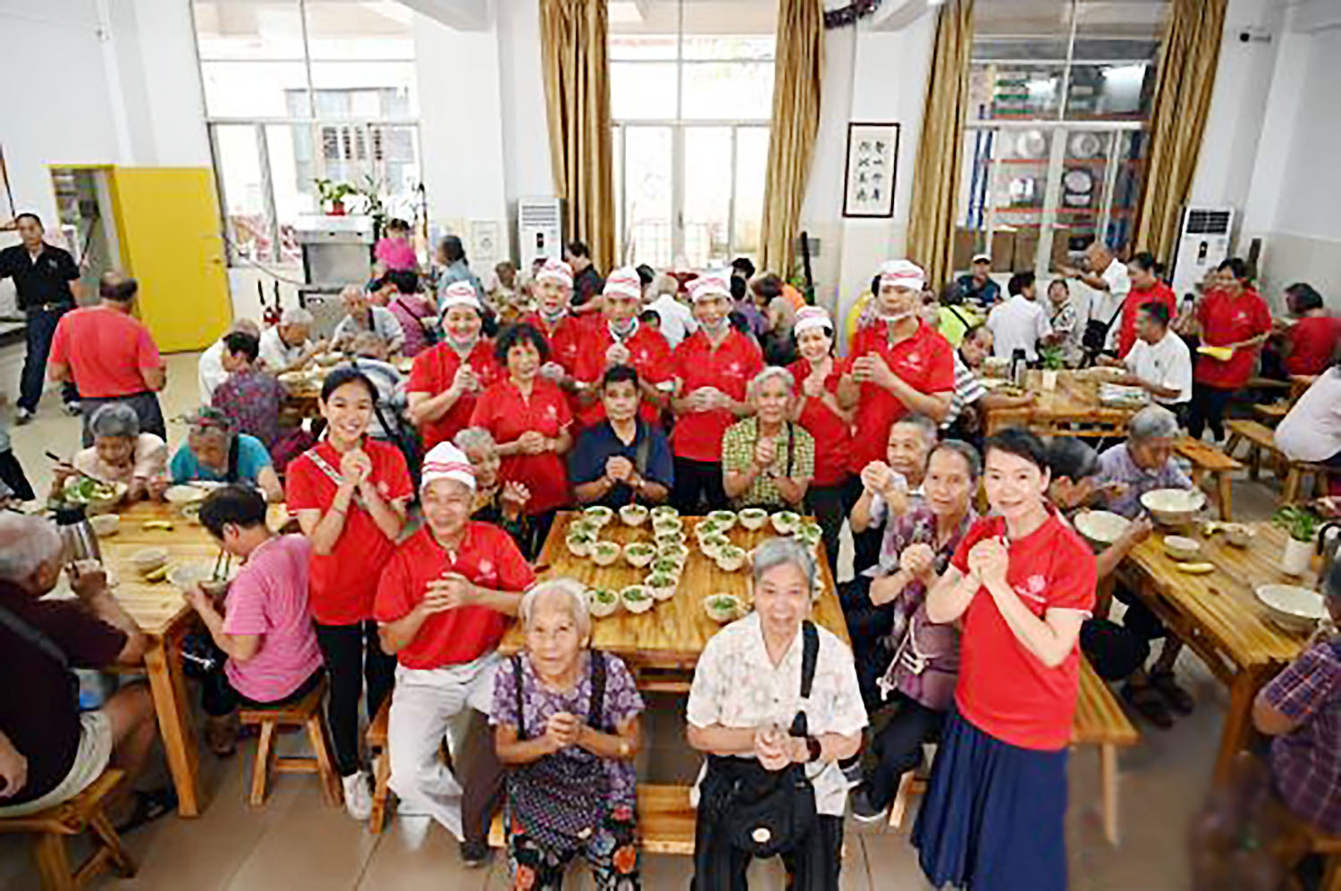10月6日,90位志愿者来到广州番禺的蓝态长者饭堂,为160位老人义务理发、献上粤剧、合唱、手语舞、太极表演等,送上“99爱心面”,与老人们一起欢度国庆假期,送上重阳祝福。