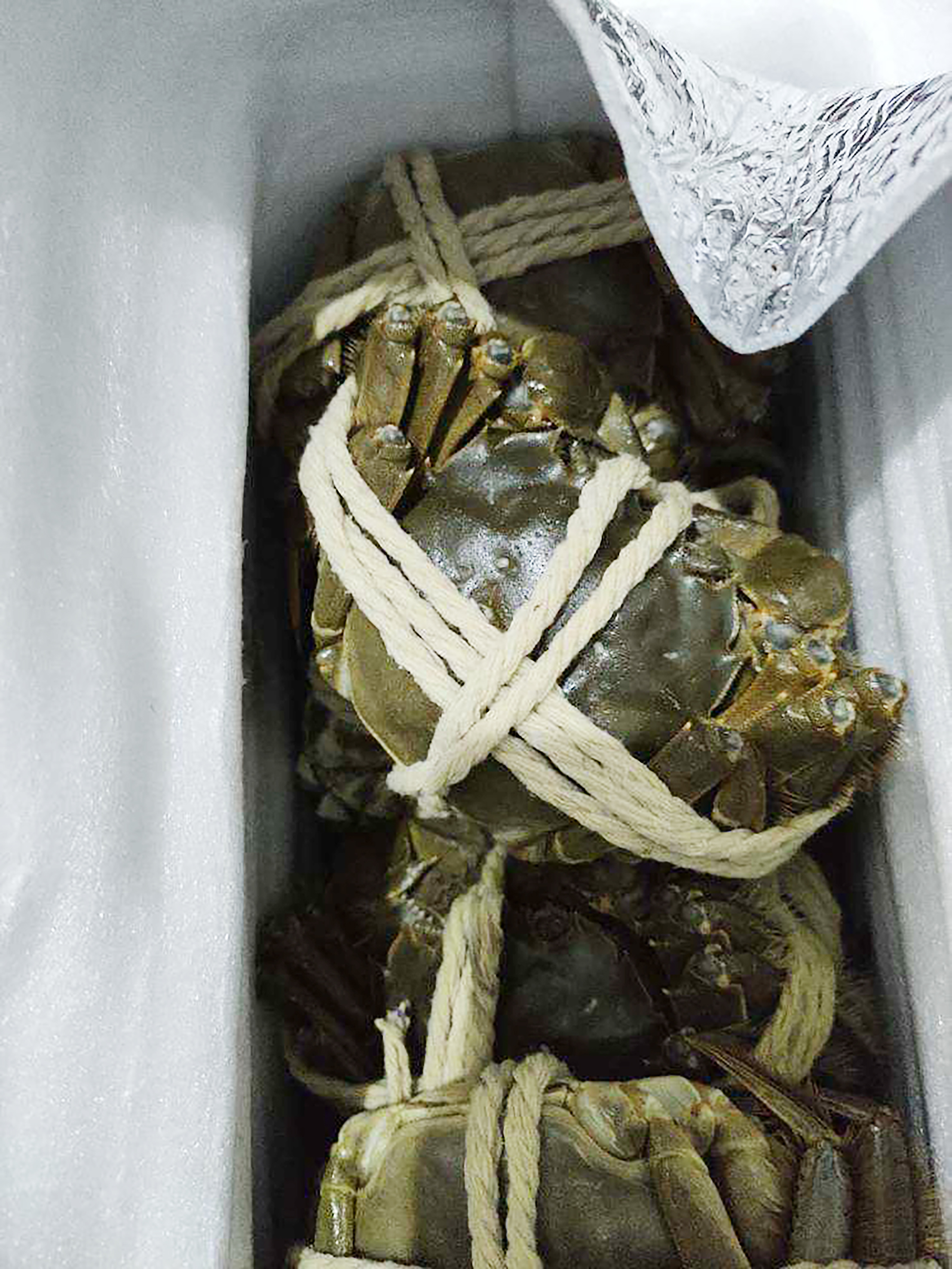 10月4日,邱先生在天猫商城的“苏湖港旗舰店”下单购买了14只大闸蟹,10月5日下午到货。当日邱先生外出有事,快递员在与邱先生取得联系后,把螃蟹寄存在菜鸟驿站,10月6日上午,邱先生取货。随后邱先生开箱,发现14只大闸蟹全部死了,“箱子里一股臭味,感觉螃蟹死了很久了。”
