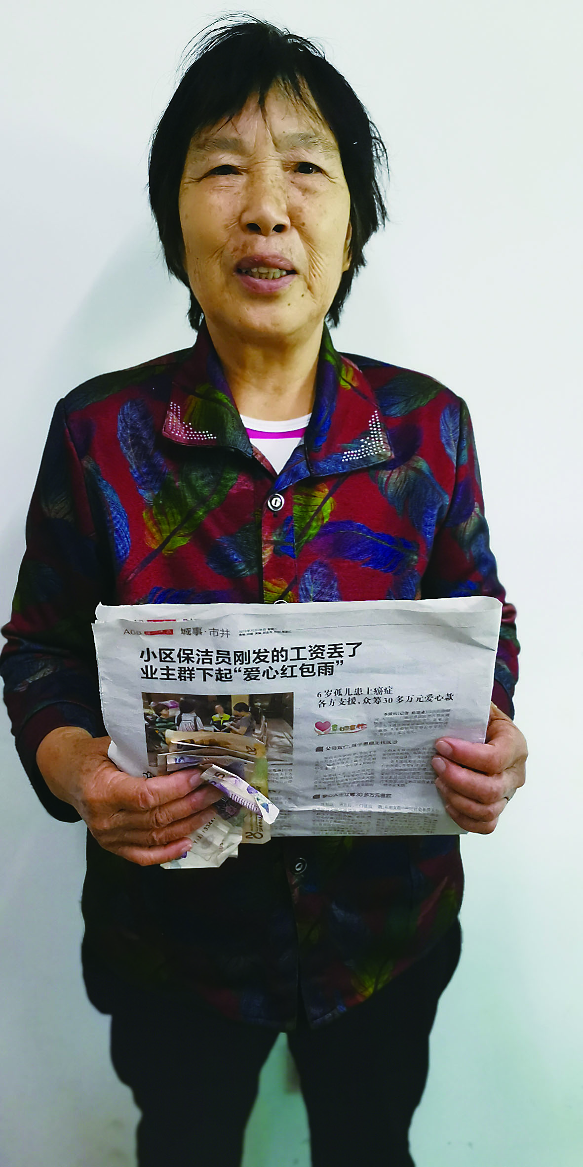 ▲李娭毑替孙子把40元爱心款送到晚报 记者 杨凌凌 摄