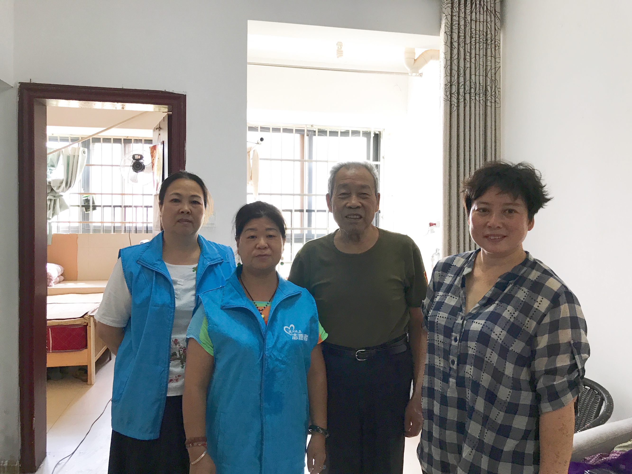 在小区物管的关心下,在邹满珍的关爱下,我现在不孤单了。9月21日,在邹满珍召集下,志愿者王冀、叶菊英、韩红等人来到我家,从早上9点开始干到下午3点半,墙壁、床铺、地面,全部打扫得干干净净,东西摆放得整整齐齐,让我的家焕然一新。特别是王冀,开着车跑10多里路来我家,真是让我十分感动……