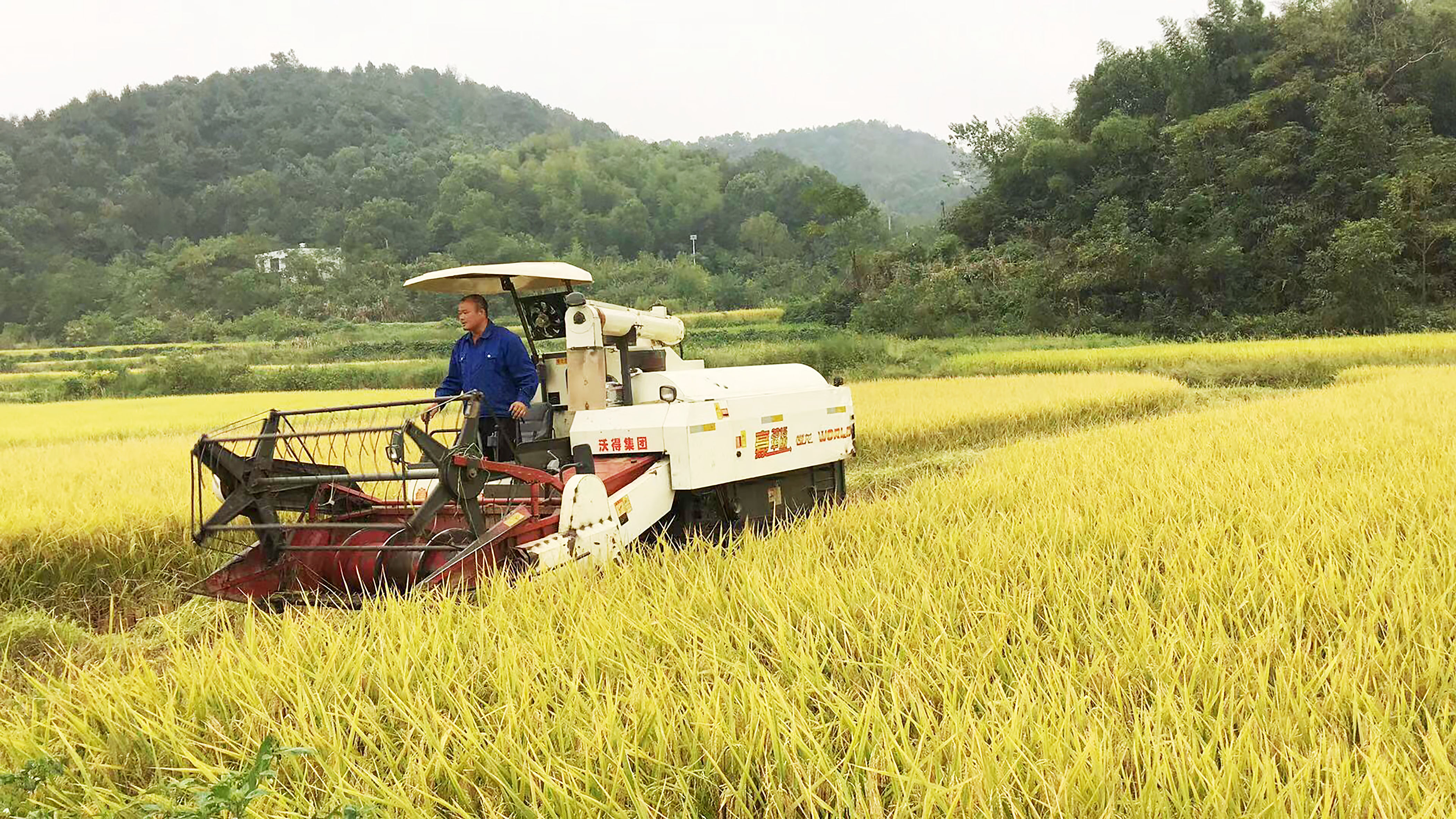 ▲收割机上安装了碎草器,边收割水稻边粉碎秸秆,碎秸秆直接还田 通讯员供图