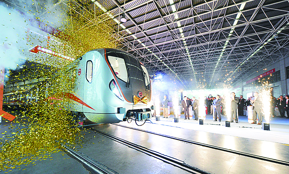 ▲上海十八号线地铁车辆昨日在中车株机下线 记者 谭清云 摄