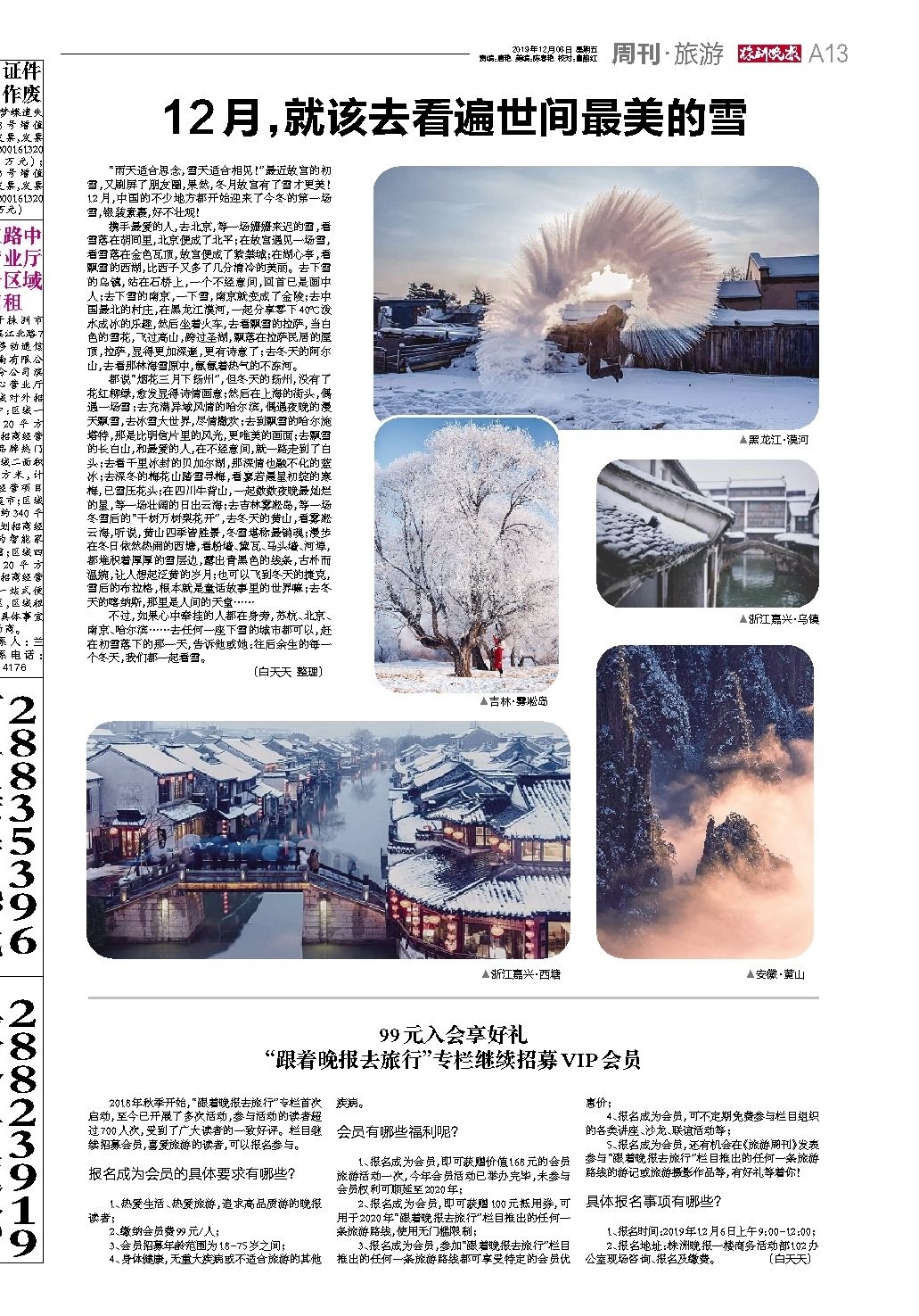 99元入会享好礼 “跟着晚报去旅行”专栏继续招募VIP会员