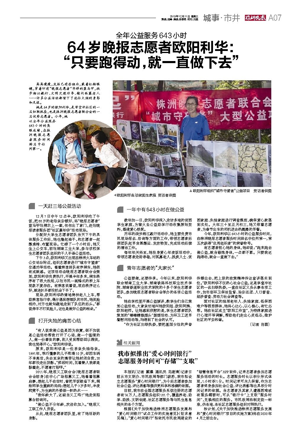64岁晚报志愿者欧阳利华: “只要跑得动,就一直做下去”