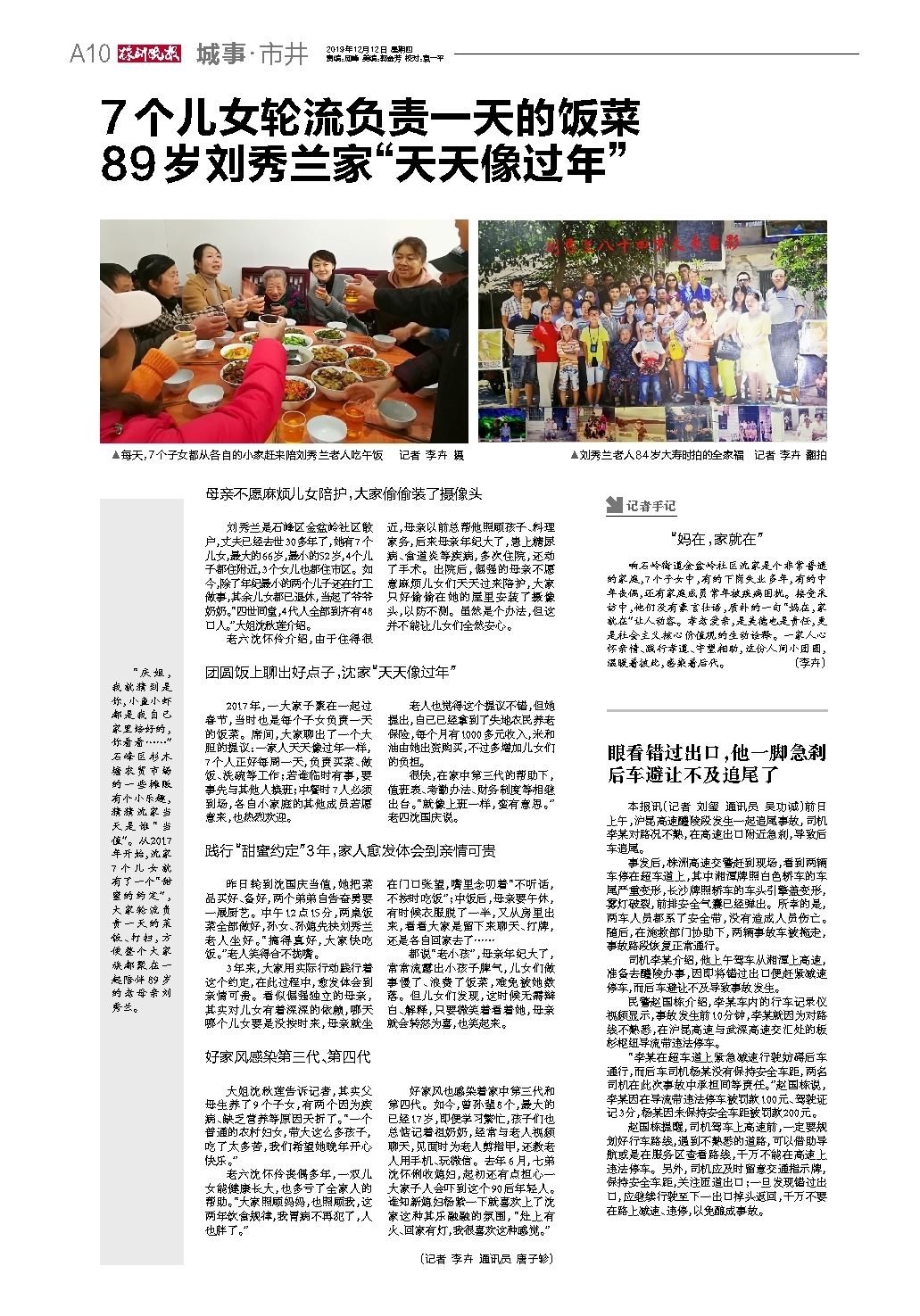 7个儿女轮流负责一天的饭菜 89岁刘秀兰家“天天像过年”
