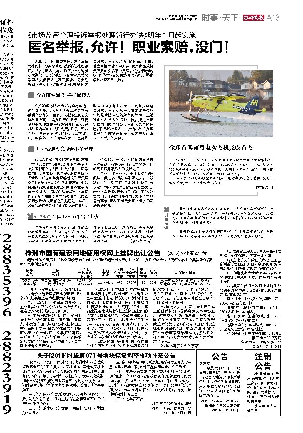 2019年12月12日《株洲晚报》